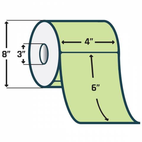 - 4" x 6" Paper Label, Perforated, Green - PMS 365, 3" Core, 8" OD, 1000 Labels per roll - Case of 4