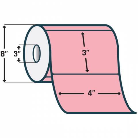 - 4" x 3" Paper Label, Perforated, Pink - PMS 1767, 3" Core, 8" OD, Floodcoated, 1840 Labels per roll - Case of 4