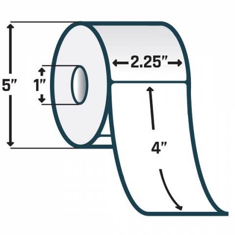 - 2.25" x 4" Paper Label, Perforated, White, 1" Core, 5" OD, 700 Labels per roll - Case of 6