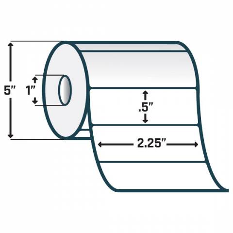 - 2.25" x .5" Paper Label, Perforated, White, 1.00" Core, 5.00" OD, 4200 Labels per roll - Case of 4