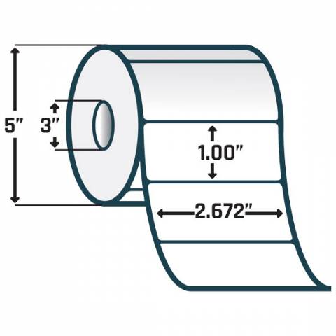 - 2.672" x 1" Polyestor Label, White, 3" Core, 5" OD, BT577 Inlay w/ Monza R6-P Chip, 1500 Labels per roll - Case of 2