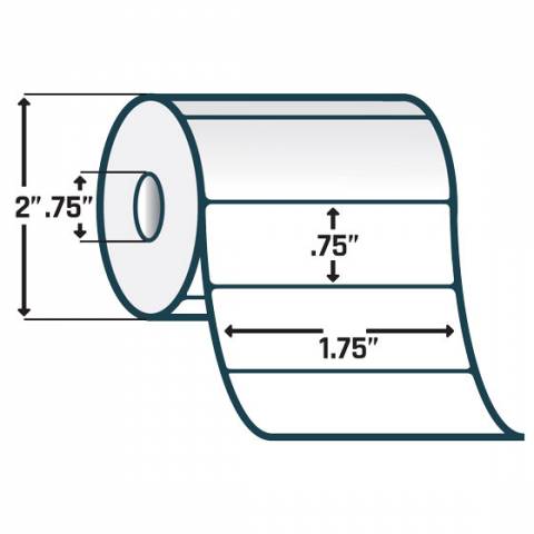 - 1.75" x 0.75" Matte Label, All-Temp Adhesive, White, BT349 RFID Inlay w/ Monza R6P Chip, 0.75" Core, 2.25" OD, 400 Labels per roll - Case of 12