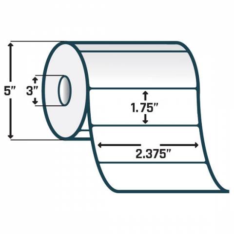 - 2.375" x 1.75" Paper Label, Not Perforated, White, 3" Core, 5" OD, 750 Labels per roll, BT793 Inlay w/ U9 Chip - Case of 2