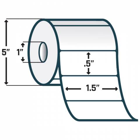 - 1.5" x .5" Polypropylene Label, Perforated, White, 1" Core, 5" OD, 3780 Labels per roll - Case of 8