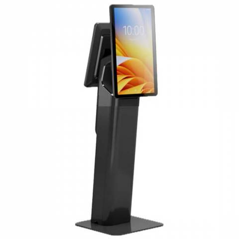 Havis Kiosk Stand with Pedestal Base allows mounting of one Zebra KC50 Kiosk and one TD50 monitor for dual-screen facing applications.