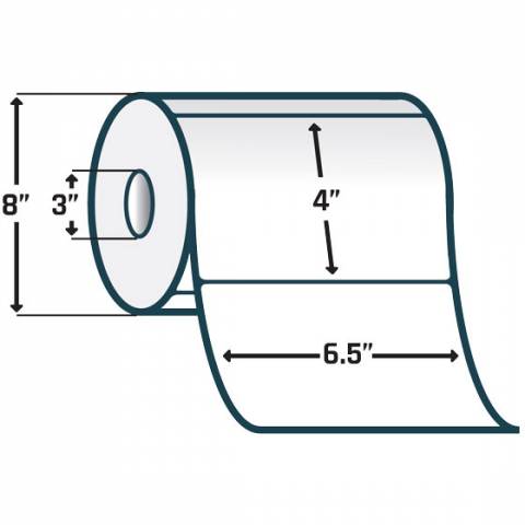 - 6.5" x 4" Paper Label, Non-Perforated, White, 3" Core, 8" OD, 1410 Labels per roll - Case of 2