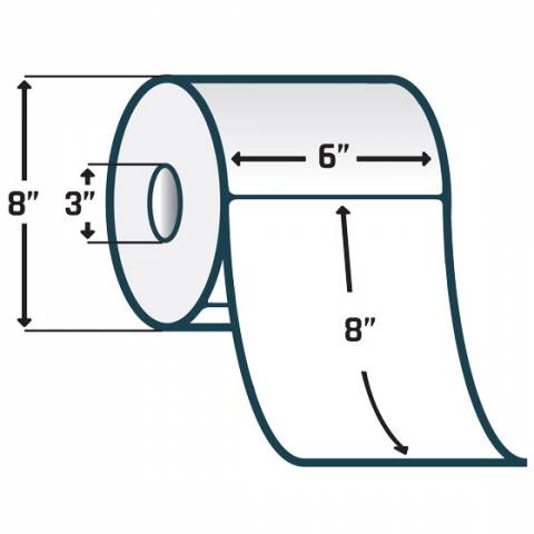 - 6" x 8" Paper Label, Perforated, White, 3" Core, 8" OD, 690 Labels per roll - Case of 2