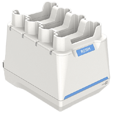 4 slot healthcare battery charger for charging 4 CipherLab RS38 batteries at the same time. Supports charging for both standard 4500 mAh and Extended 6800 mAh batteries.