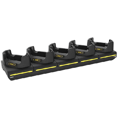 5 slot terminal cradle w/ ethernet for charging 5 CipherLab RS38 mobile computers at the same time. Supports devices with both 4500 mAh and 6800 mAh batteries.