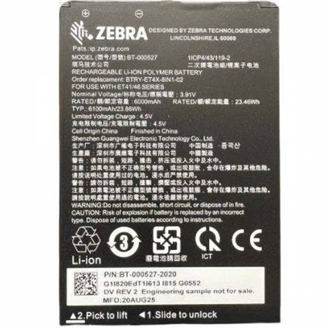 Zebra 6100 mAh internal spare/replacement battery for 8" Zebra ET401 Android Tablets.
