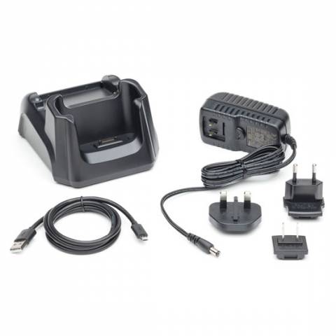 Single Slot USB/Serial Cradle Kit for the Janam XT2 Android Barcode scanner. Use to charge the device as well as comminicate with a PC over USB.