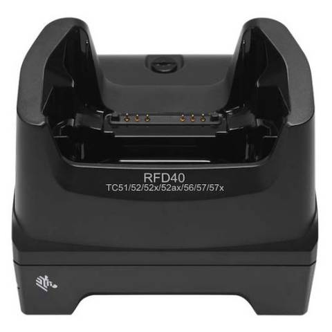 Single Slot Charging ShareCradle for charging the Zebra RFD40 Sled and a TC51, TC52, TC52x, TC52ax, TC56, TC57, and TC57x device while also enabling USB connectivity for the RFD40 to a PC.
