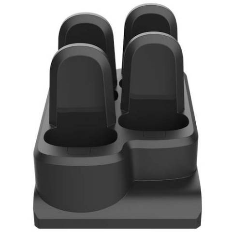Four slot charge only cradle adapter cup for 4 Zebra CS6080 barcode scanners that can be used with a sharecradle base.