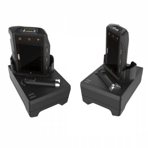 The Zebra WT6300 Single Slot Charging and USB Communication Cradle charges your WT6300 devices while providing USB communication to a PC or Laptop.