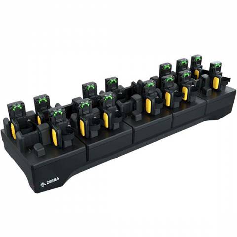 Twenty slot charge only cradle charges up to 20 Zebra RS5100 Ring scanners simultaneously.