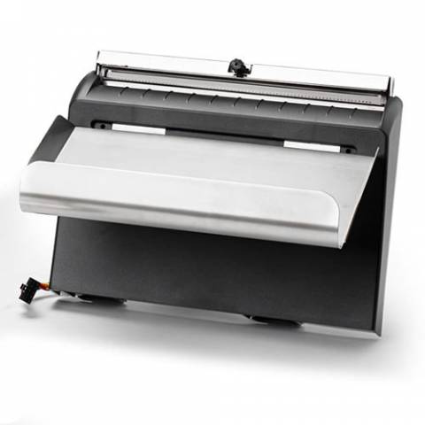 Front-mounted heavy-duty guillotine cutter and catch tray upgrade kit for existing ZT420 / ZT421 industrial printers.